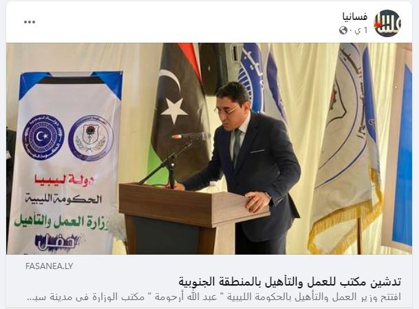 ابرز ما تناقلته وسائل الاعلام المختلفة عن أفتتاح معالي وزير العمل والتأهيل المهندس / عبدالله الشارف ارحومة لمبنى مكتب العمل والتأهيل سبها كمكتب عمل نموذجي