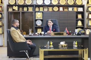 – في إطار متابعته المستمرة للجوانب المالية والإدارية بالوزارة، عقد معالي وزير العمل والتأهيل الدكتور/ عبدالله الشارف أرحومة، صباح اليوم الأحد، اجتماعًا بمكتبه بمقر وزارة العمل والتأهيل (المبنى رقم 1) بمدينة سرت، مع السيد/ مصباح الجدي المراقب المالي العام، وذلك لمتابعة الوضع المالي العام للوزارة.